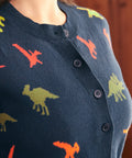 Embrace a fusion of prehistoric playfulness and retro charm with the Old Soul Classic Cardigan in Twilight Marina, a unique find from our ModCloth namesake label. This navy knit cardigan is adorned with colorful dinosaur prints, adding a splash of fun to your winter wardrobe. The button closure and medium stretch ensure a comfortable fit, making it perfect for layering over your favorite cold-weather ensembles. Whether you're headed to the office or a weekend getaway, this cardigan brings a touch of whimsy to any occasion.