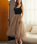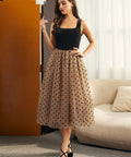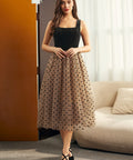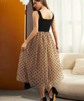 Turn every entrance into an event with the Tulle Intentions Dress from our ModCloth namesake label. This vintage-inspired stunner pairs a corset style black velvet bodice with a flouncy polka-dot tulle skirt for a look that’s both sweet and sultry. The square neckline and fitted waist flatter your figure, while the full midi skirt brings the drama. Perfect for parties, candlelit dinners, or any night you plan to make just a little trouble.