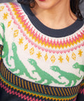 From our ModCloth namesake label comes the enchanting Retro Charm Raglan Sweater in twilight marina. This navy knit garment, designed with medium stretch for comfort, features a delightful dino fairisle pattern that adds a touch of whimsy to your winter wardrobe. The raglan sleeves provide a casual, sporty look, ideal for pairing with your favorite jeans for an outing, or with comfy leggings for a relaxed evening at home.