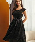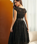 A little shimmer goes a long way in the Starry Soirée Lace Dress from our ModCloth namesake label. Crafted from intricate black lace dusted with subtle sequins, this vintage-inspired silhouette twinkles with every step. The satin ribbon at the waist adds a touch of retro romance, while the flattering fit-and-flare shape makes it perfect for festive gatherings, candlelit dinners, or any night made for a little sparkle.