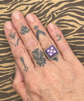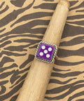 Handmade in California by Bog-Art-Studio, this sterling silver dice ring features a genuine, vintage 1950's die, set in a serrated bezel, framed by twisted deco wire. The adjustable size ensures a comfortable fit for any wearer. Symbolizing luck, fate, and boldness, dice represent the thrill of risk and opportunity. Inspired by the spirit of Las Vegas, this ring is a stylish tribute to fortune, adventure, and embracing life's possibilities.